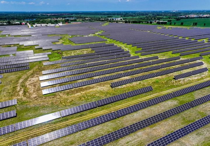 2024年7月19日拍攝的內(nèi)蒙古通遼發(fā)電總廠光伏電站(無(wú)人機(jī)照片)。新華社記者 連振 攝