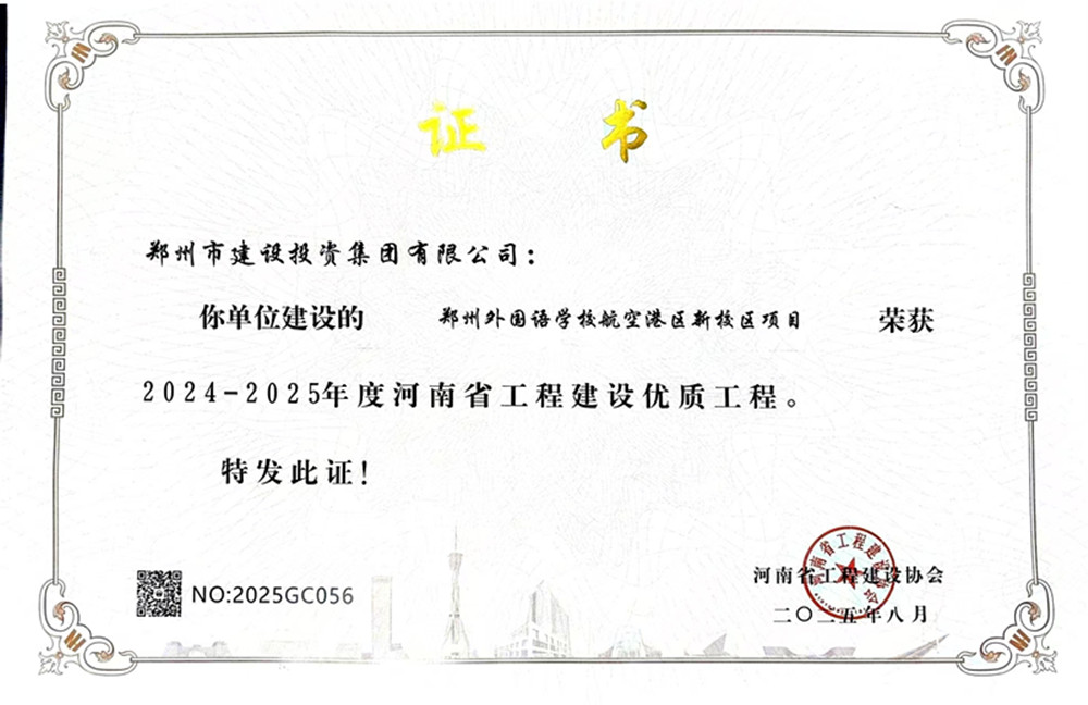 近日,由集團(tuán)公司代建的鄭州外國(guó)語(yǔ)學(xué)校航空港區(qū)新校區(qū)項(xiàng)目榮獲2024-2025年度河南省工程建設(shè)優(yōu)質(zhì)工程榮譽(yù)。